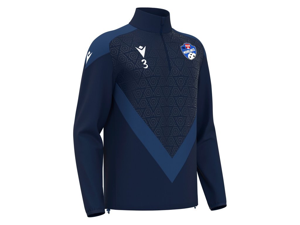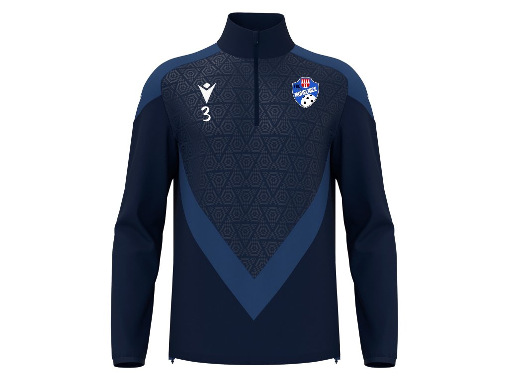 Vrchní část na 1/4 zipu z inovativní tkaniny Confortex, která nabízí vynikající rovnováhu mezi pohodlím a odolností. Konstrukce zahrnuje reverzní nylonový zip s automatickým taháčkem, který zajišťuje bezpečnou a snadnou manipulaci při fyzické aktivitě. Límec je navržen tak, aby chránil krk a udržoval teplo, čímž zvyšuje pohodlí během venkovních tréninků. Dále se vyznačuje reliéfním vzorem na přední straně, manžetami z lycry a nastavitelným lemem se stahovací šňůrkou. K dispozici v různých barvách.