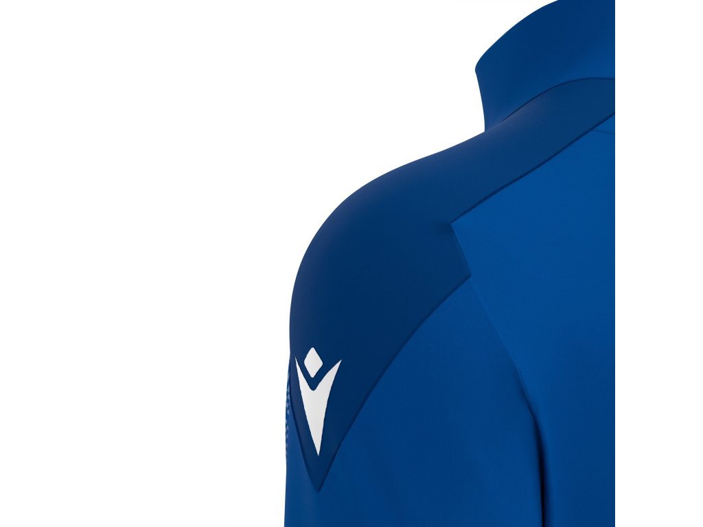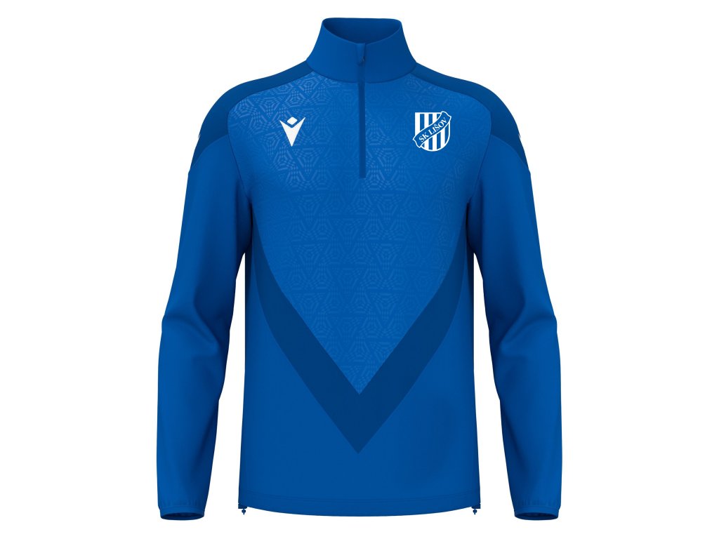 Vrchní část na 1/4 zipu z inovativní tkaniny Confortex, která nabízí vynikající rovnováhu mezi pohodlím a odolností. Konstrukce zahrnuje reverzní nylonový zip s automatickým taháčkem, který zajišťuje bezpečnou a snadnou manipulaci při fyzické aktivitě. Límec je navržen tak, aby chránil krk a udržoval teplo, čímž zvyšuje pohodlí během venkovních tréninků. Dále se vyznačuje reliéfním vzorem na přední straně, manžetami z lycry a nastavitelným lemem se stahovací šňůrkou. K dispozici v různých barvách.