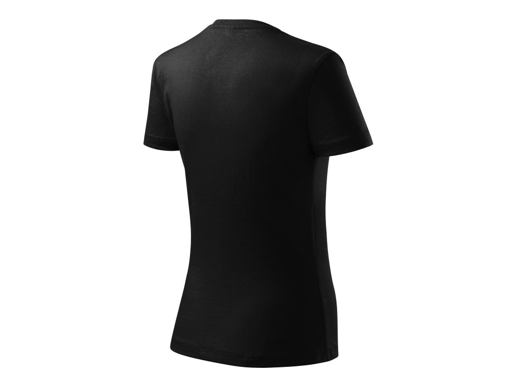 lehce vypasovaný střih s bočními švy úzký lem průkrčníku z žebrového úpletu 1:1 s 5 % elastanu vnitřní část průkrčníku začištěna páskou z vrchového materiálu zpevnění ramenních švů páskou silikonová úprava