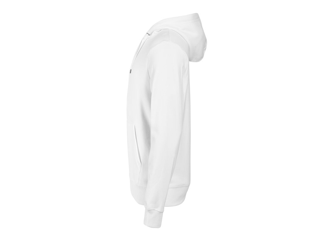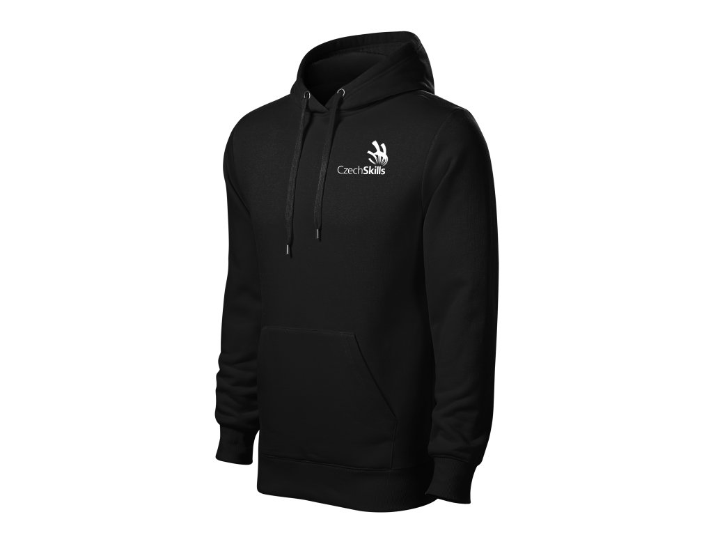 rovný střih s bočními švy kapuce s podšívkou, na stažení šňůrkou vnitřní část průkrčníku začištěna páskou v barvě vrchového materiálu nakládaná kapsa ve stylu klokanky dolní lem a manžety rukávů z žebrového úpletu 2:2 s 5 % elastanu vnitřní strana počesaná