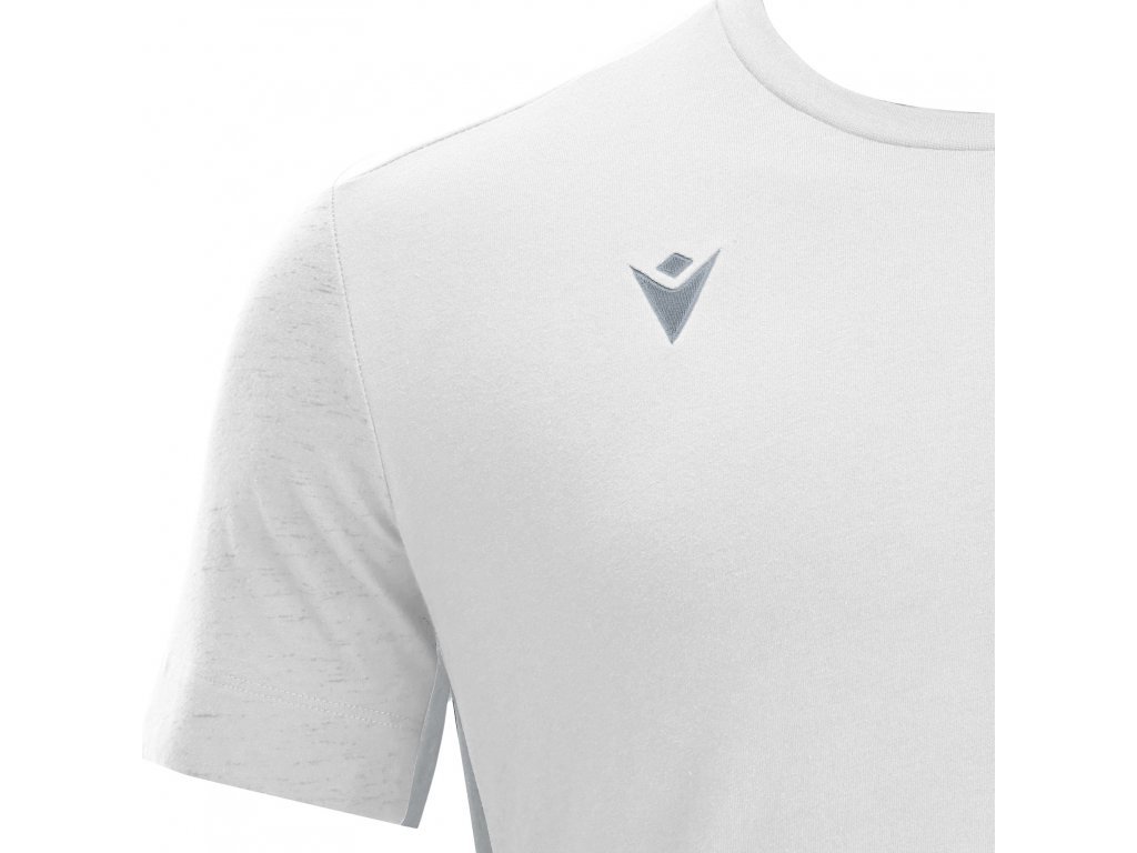 Tričko s žebrovaným úpletem u krku v barvě, 100% bavlna. Textura s melanžovým efektem na rukávech a ramenou a vsadky tón v tónu na bocích a spodním okraji rukávů.