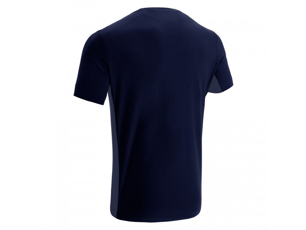Tričko s žebrovaným úpletem u krku v barvě, 100% bavlna. Textura s melanžovým efektem na rukávech a ramenou a vsadky tón v tónu na bocích a spodním okraji rukávů.