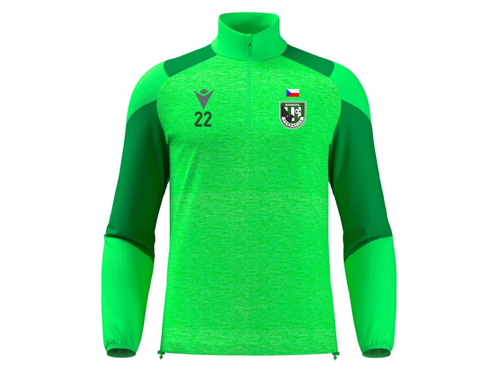 Tréninkový top z tkaniny Confortex. Má límec s 1/4 nylonového zipu s automatickým zámkem a melanžovou texturu na přední straně. Má sportovní manžety z lycry a mikrosíťové vložky na ramenou pro lepší prodyšnost. Spodní část se stahovací šňůrkou umožňuje nastavení objemu pro přiléhavý střih a pohodlí při pohybu. K dispozici v 8 barevných provedeních.