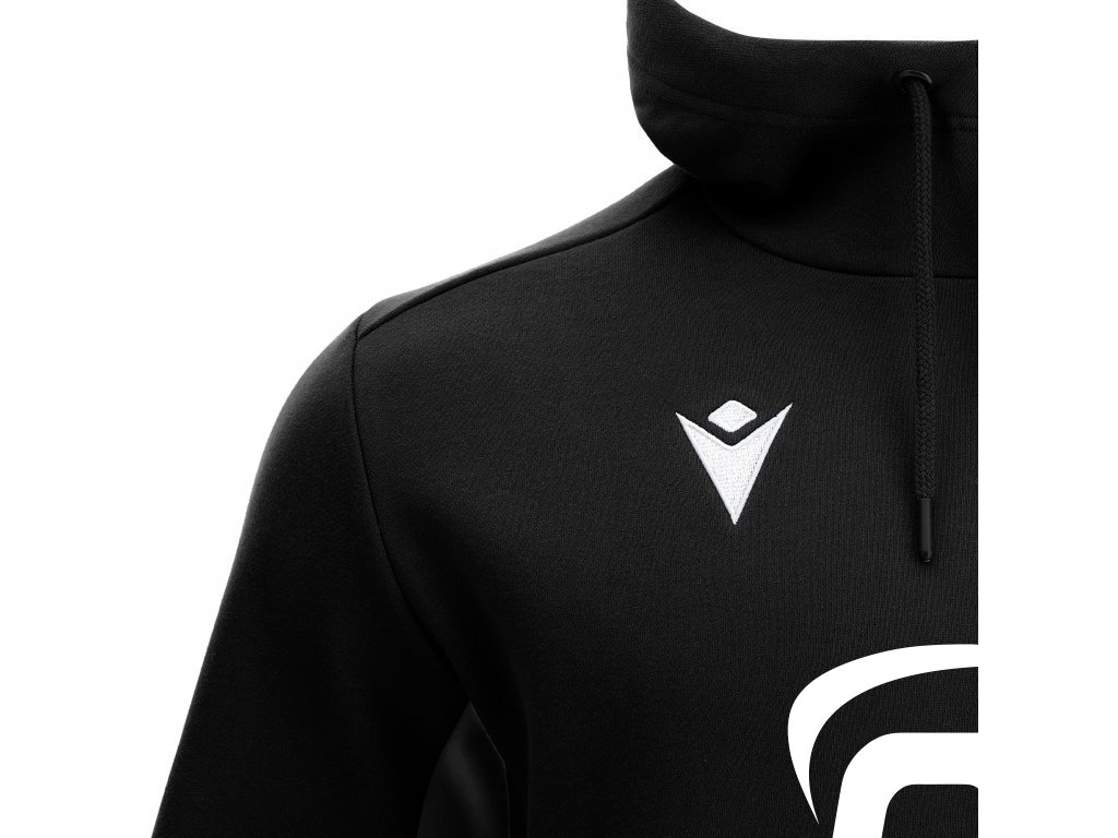 Volnočasová mikina z broušené polybavlny s kapsičkou, pletenými manžetami a pasem. Kulatá stahovací šňůrka s agletem pro úpravu střihu kapuce. Vsadky v tónu na spodním rukávu a na bocích.