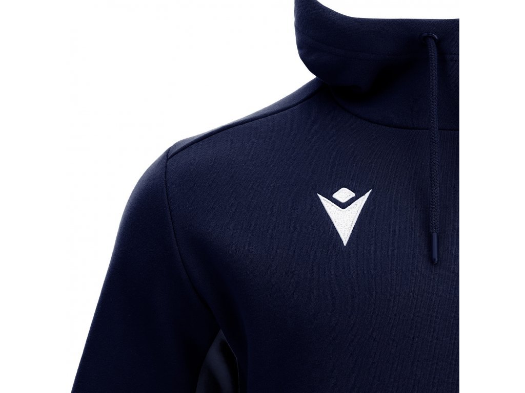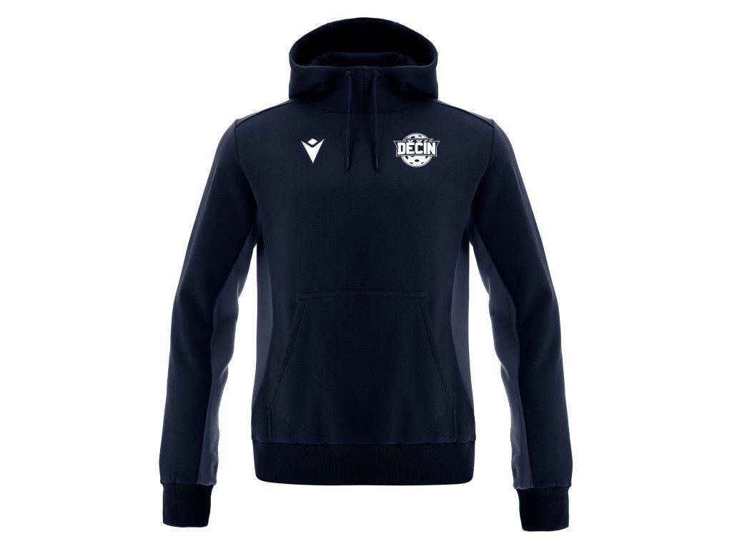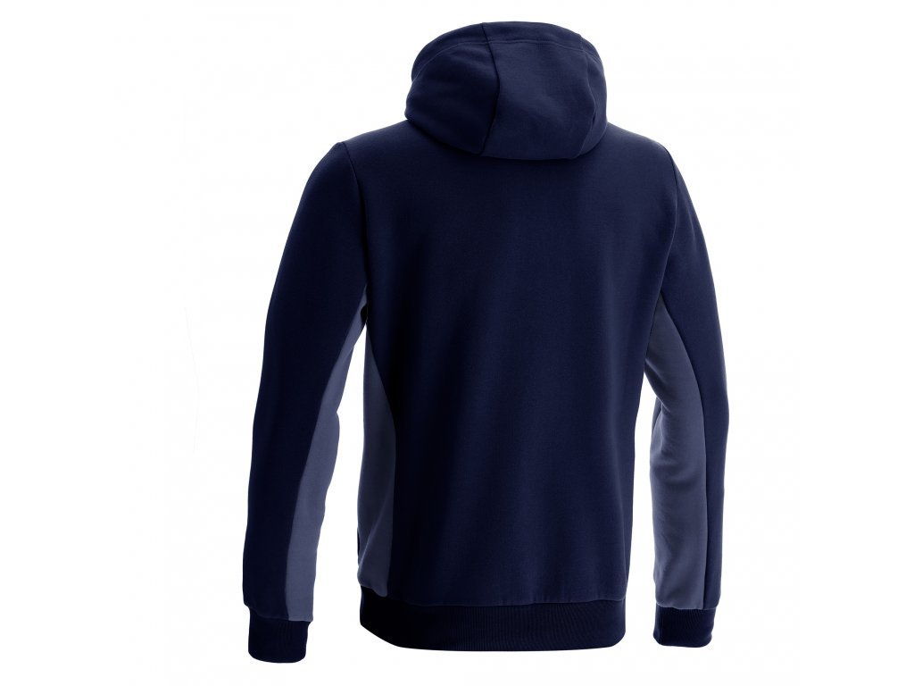 Volnočasová mikina z broušené polybavlny s kapsičkou, pletenými manžetami a pasem. Kulatá stahovací šňůrka s agletem pro úpravu střihu kapuce. Vsadky v tónu na spodním rukávu a na bocích.