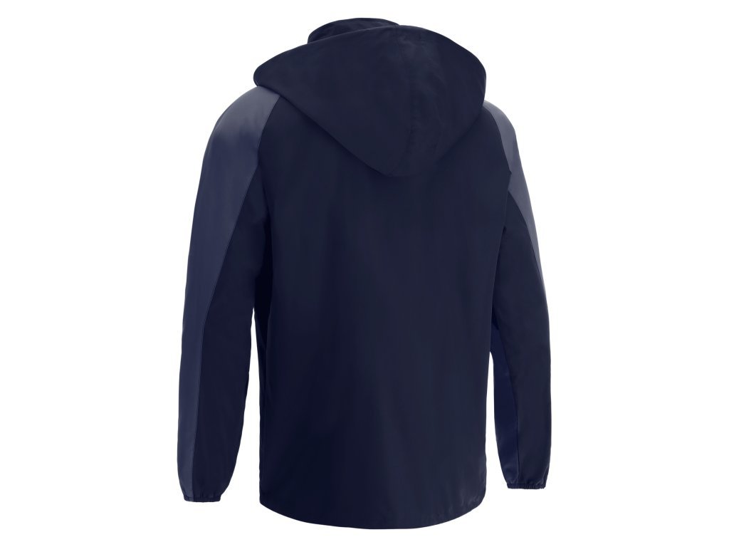 Bunda z voděodolné tkaniny s podšívkou ze síťoviny, nepromokavá a zároveň prodyšná. Obrácený středový zip po celé délce z nylonu s automatickým zámkem. Boční kapsy se zapínáním na zip. Kapuce zabalená do límce, elastické manžety a stahovací šňůrka dole. Tón v tónu vsadky na rukávech.