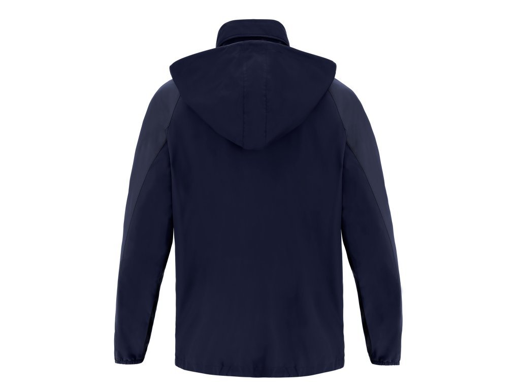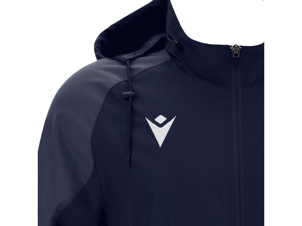 Bunda z voděodolné tkaniny s podšívkou ze síťoviny, nepromokavá a zároveň prodyšná. Obrácený středový zip po celé délce z nylonu s automatickým zámkem. Boční kapsy se zapínáním na zip. Kapuce zabalená do límce, elastické manžety a stahovací šňůrka dole. Tón v tónu vsadky na rukávech.