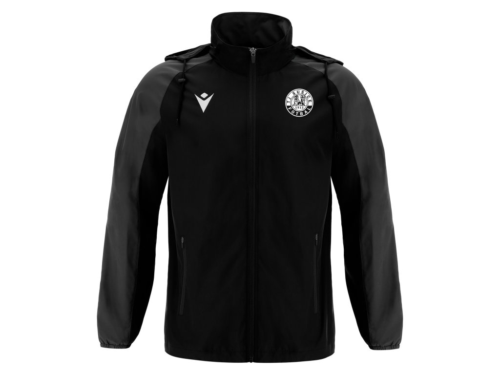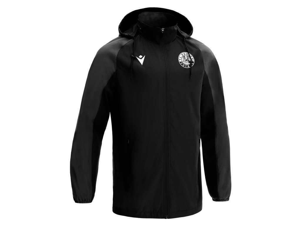 Bunda z voděodolné tkaniny s podšívkou ze síťoviny, nepromokavá a zároveň prodyšná. Obrácený středový zip po celé délce z nylonu s automatickým zámkem. Boční kapsy se zapínáním na zip. Kapuce zabalená do límce, elastické manžety a stahovací šňůrka dole. Tón v tónu vsadky na rukávech.