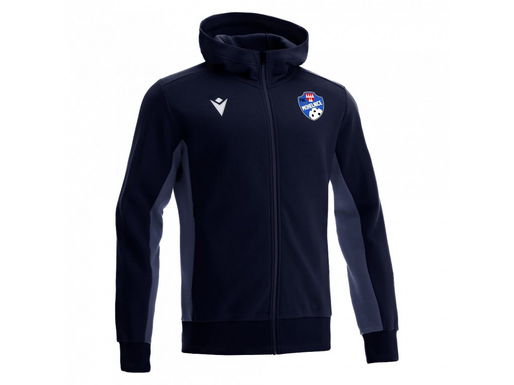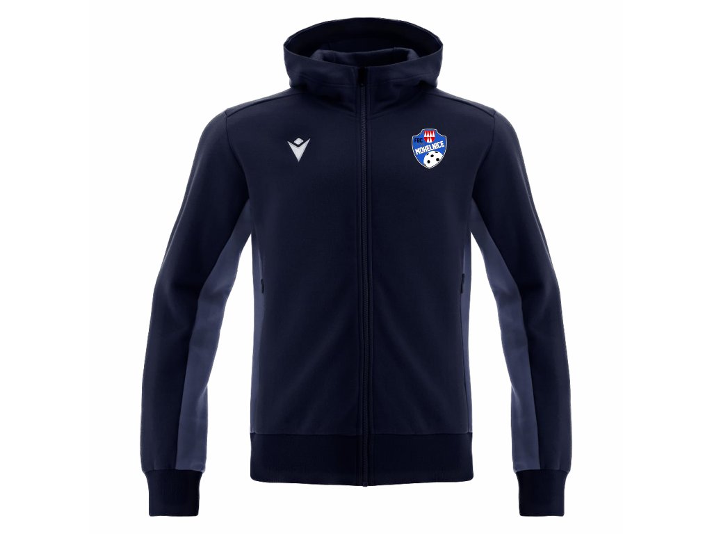 Volnočasová mikina z broušené polybavlny se středovým litým zipem po celé délce. Boční kapsy se zapínáním na zip s pogumovanými taháčky zipů s hrdinou Macron. Tón v tónu vsadky na bocích a spodním okraji rukávů.