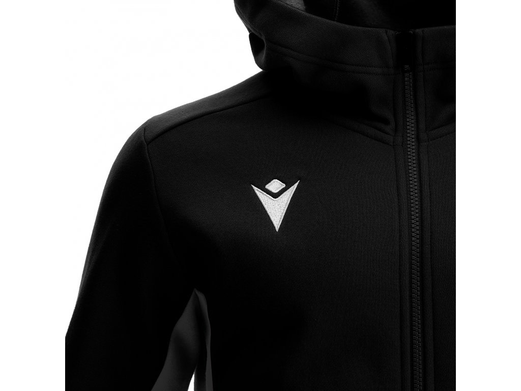 Volnočasová mikina z broušené polybavlny se středovým litým zipem po celé délce. Boční kapsy se zapínáním na zip s pogumovanými taháčky zipů s hrdinou Macron. Tón v tónu vsadky na bocích a spodním okraji rukávů.