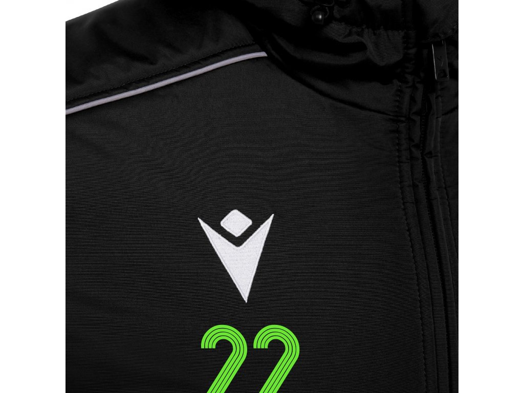 Gyorská vycpaná bunda z tkaniny Chamtex (100% polyester). Univerzální tkanina, která díky speciální vnitřní voděodolné technice zajišťuje nepromokavost bundy. Bunda s kapucí je vybavena špičkovými technologiemi a je ideální pro udržení tepla, ať už jste na tribuně, nebo na lavičce. K dostání v široké škále velikostí, od dětských až po dospělé. Boční kapsy se zapínáním na knoflíky a vnitřní fleecová podšívka.