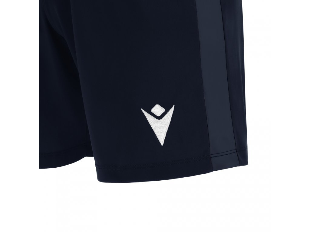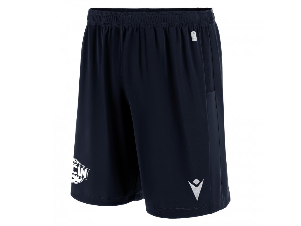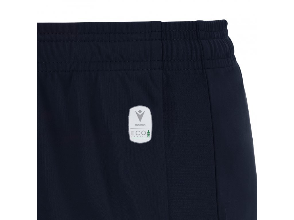 Sourodé šortky z materiálu Eco Softlock s plochou stahovací šňůrkou a vsadkami z ekologické síťoviny na bocích. Na přední straně je bíle vyšitý hrdina Macron.