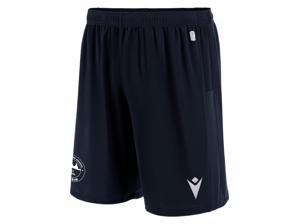Sourodé šortky z materiálu Eco Softlock s plochou stahovací šňůrkou a vsadkami z ekologické síťoviny na bocích. Na přední straně je bíle vyšitý hrdina Macron.